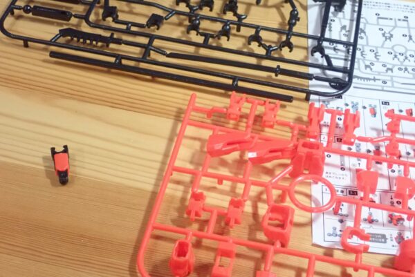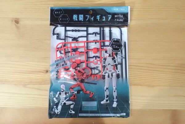 セリアをプラプラしていたら、な、なんと、戦闘フィギュアのプラモデルに出会ってしまいました。各パーツは赤と黒で、塗装不要です。