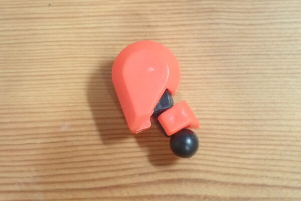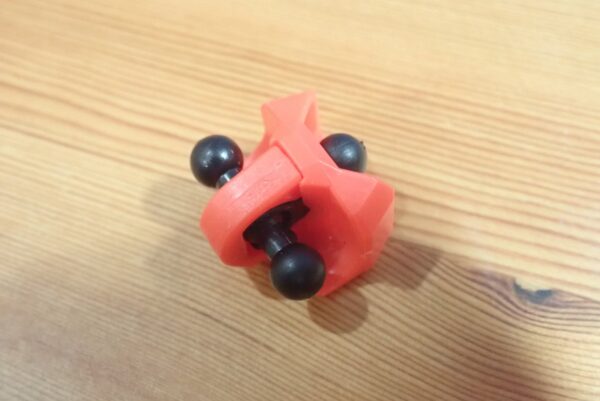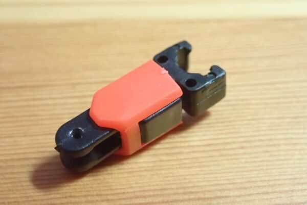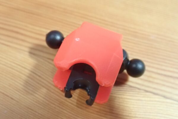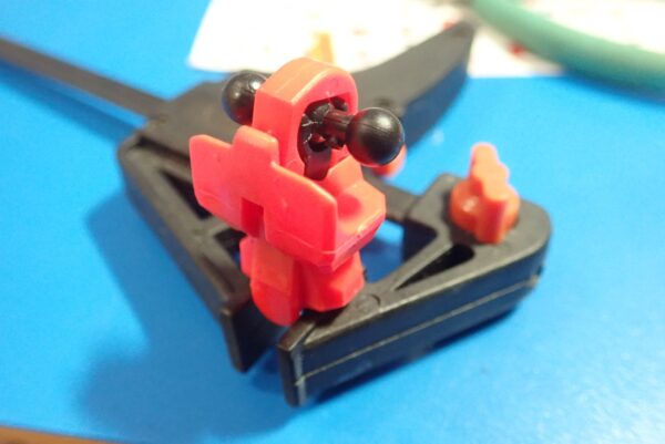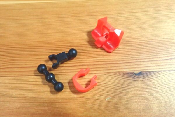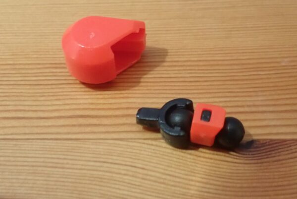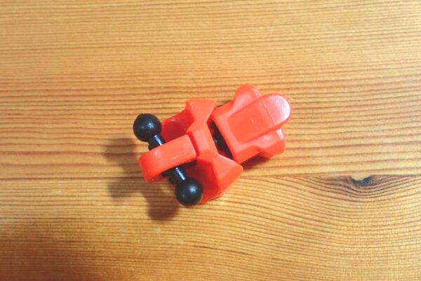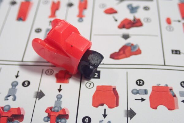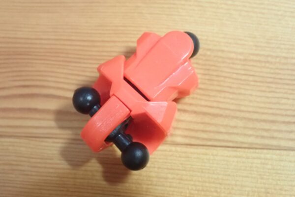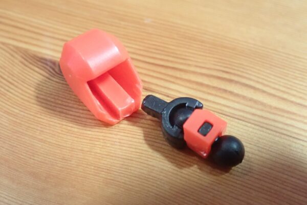 一旦、外して、考えます。えっと、ジョイント部分を赤い頭部に押し込むことで、しっかりとジョイント外部がこていされるので……。
