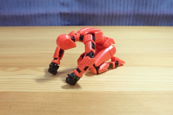 肘、膝、ともに二重関節構造になっているため、ほぼほぼ180度まで曲げることができます。なので、正座もできます。
